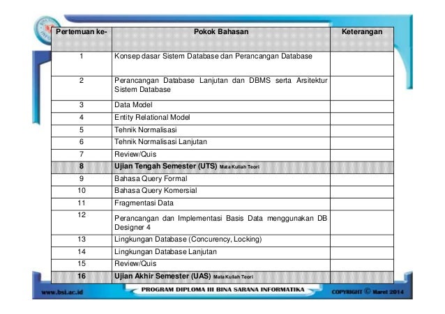 Uts sistem basis data bsi semester 3. Check spelling or type a new query. We did not find results for: Maybe you would like to learn more about one of these?